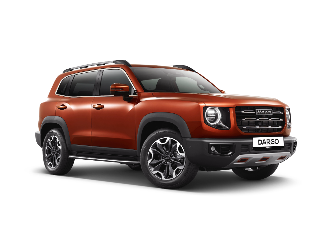 Внешность Хавейл Дарго подчеркивает внедорожный стиль: рейлинги на крыше, антенна «акулий плавник» и подготовка под фаркоп. Светодиодные фары, ДХО и задние фонари формируют современный облик, а датчик света повышает удобство. Высокий клиренс и широкие арки усиливают брутальность и уверенность автомобиля.